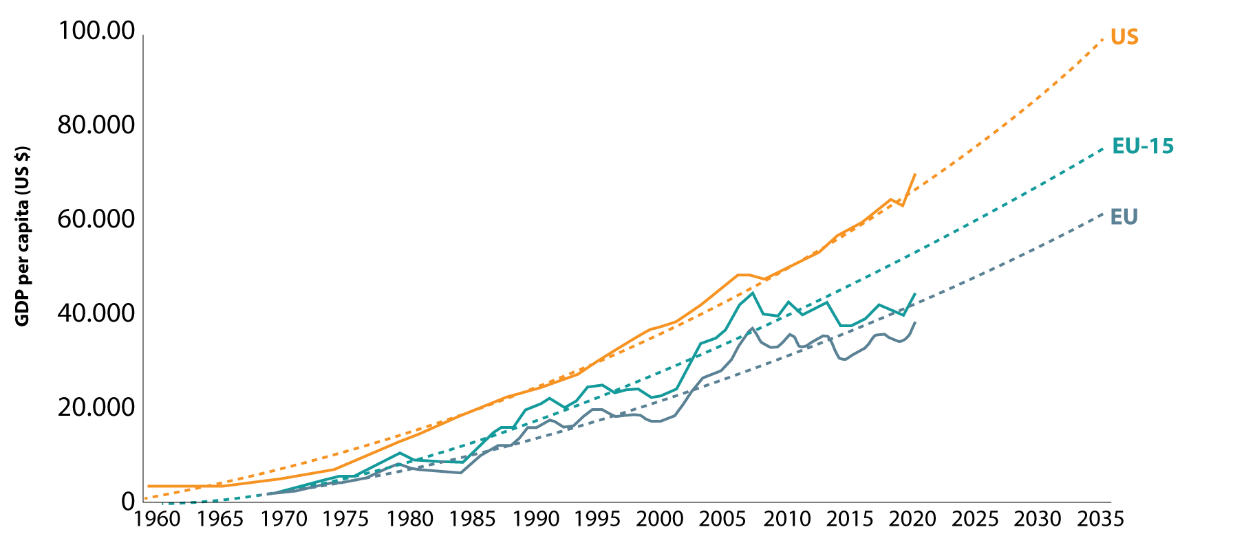 France economically is also more dependent on its government, than perhaps the UK or the US which has a more dynamic private sector. Mired in political turmoil, much like Germany, it seems likely to register GDP growth rates of less than 1.00%. The Eurozone ocean liner relies on both France and Germany as its tugboats to set sail. France is becoming a real time fiscal rejection to the ‘new Keynesian’ promise that generous welfare programs, high taxes and a strong socialist leaning precipitate healthy economic growth. It has the largest government relative to the domestic economy in the OECD, has suffered three what might be considered stagnant decades, in growth terms at least, as measured by living standards and moreover even its citizens, which benefit handsomely from a generous welfare state, are very unhappy with their lot. The political landscape too offers little by way of fiscal alternative – the ‘middle’ and the left wing – both favour high taxes and high government spend, the former insufficient to offset the latter, leading to ever greater debt burdens. An interesting yardstick by which to compare the efficacy of large social welfare programs to improve economic outcomes is to consider certain EU countries relative to some of the weakest States in America.