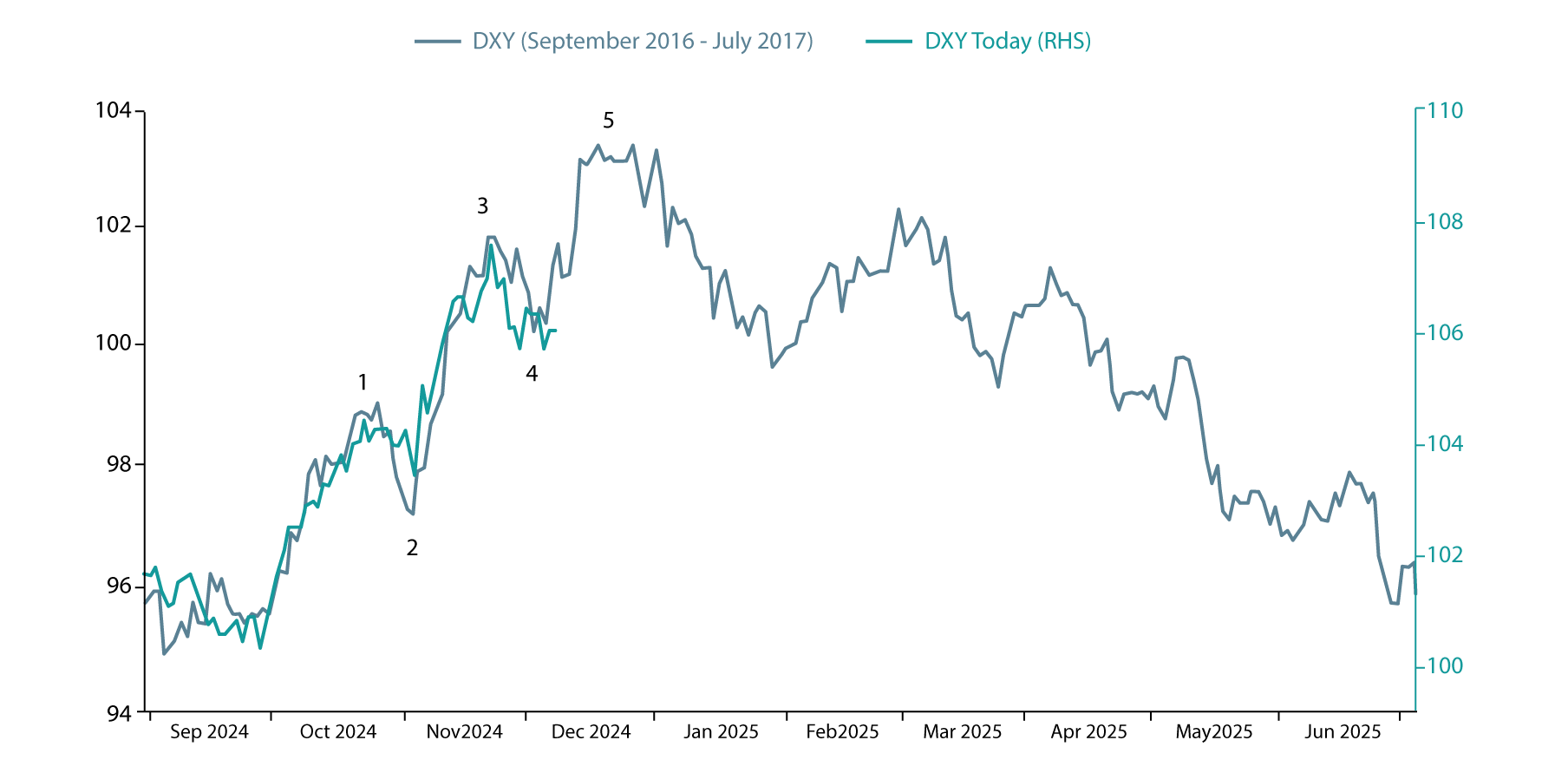 Trump has already softened his approach towards a strong US, and James Baker’s Plaza Accord sets outs a framework for a coordinated lowering of the US Dollar. In fact, if we follow the 2016 trajectory, the US Dollar could well top over the New Year period.