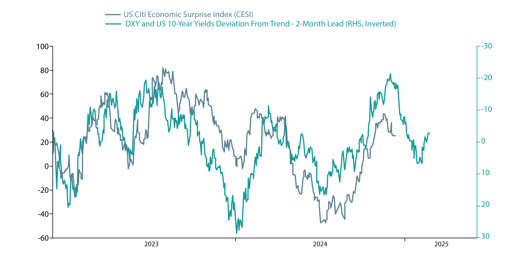 Figure 8: US Dollar, 10 Year Yields and US Economic Citi Surprise Index