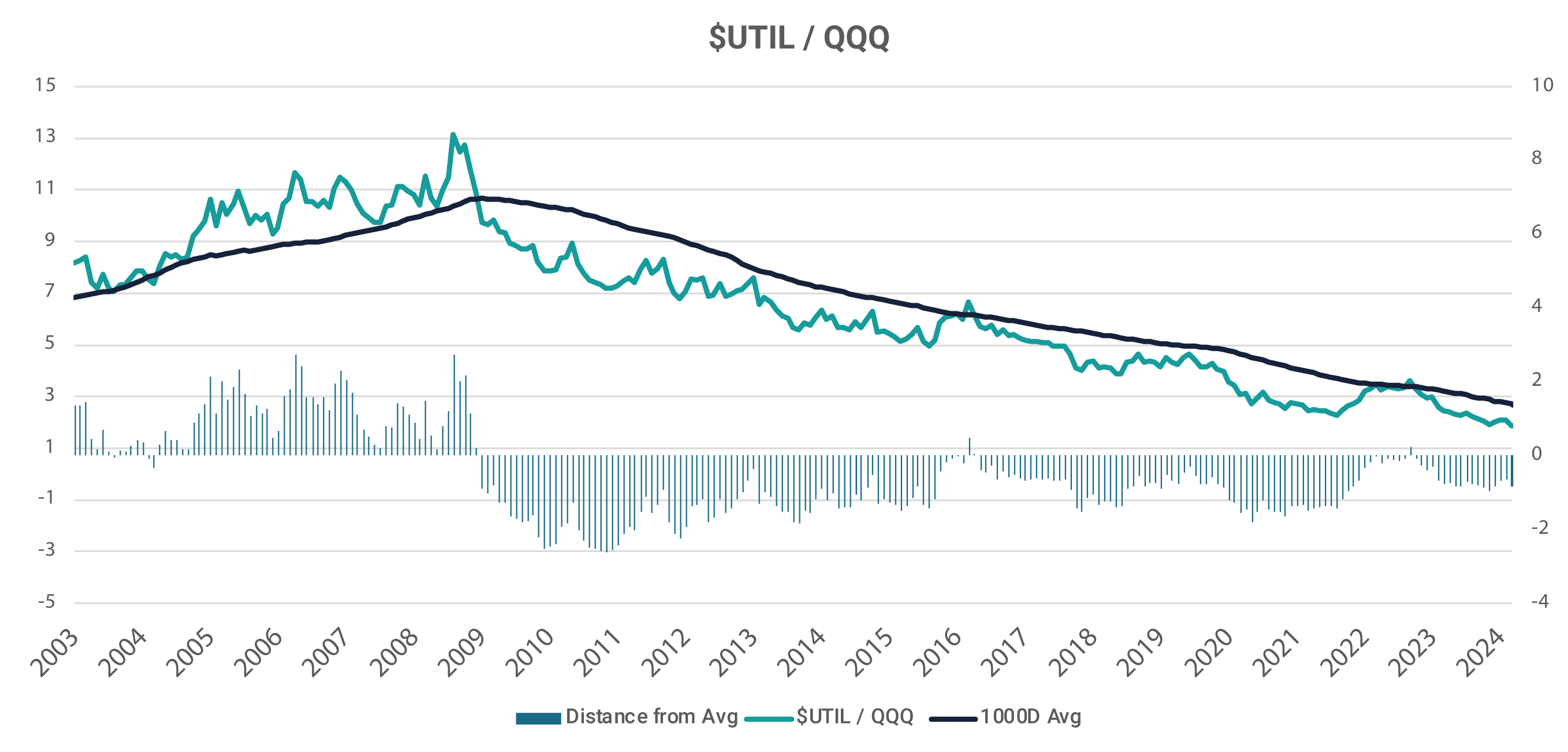 Such asset allocation changes include utilities and consumer staples sectors, which have been out of favour for some time. The below chart shows perhaps that that tide has turned, and specifically markets may for a period of time take on a more defensive leadership. A housing and retail led slowdown is long overdue.