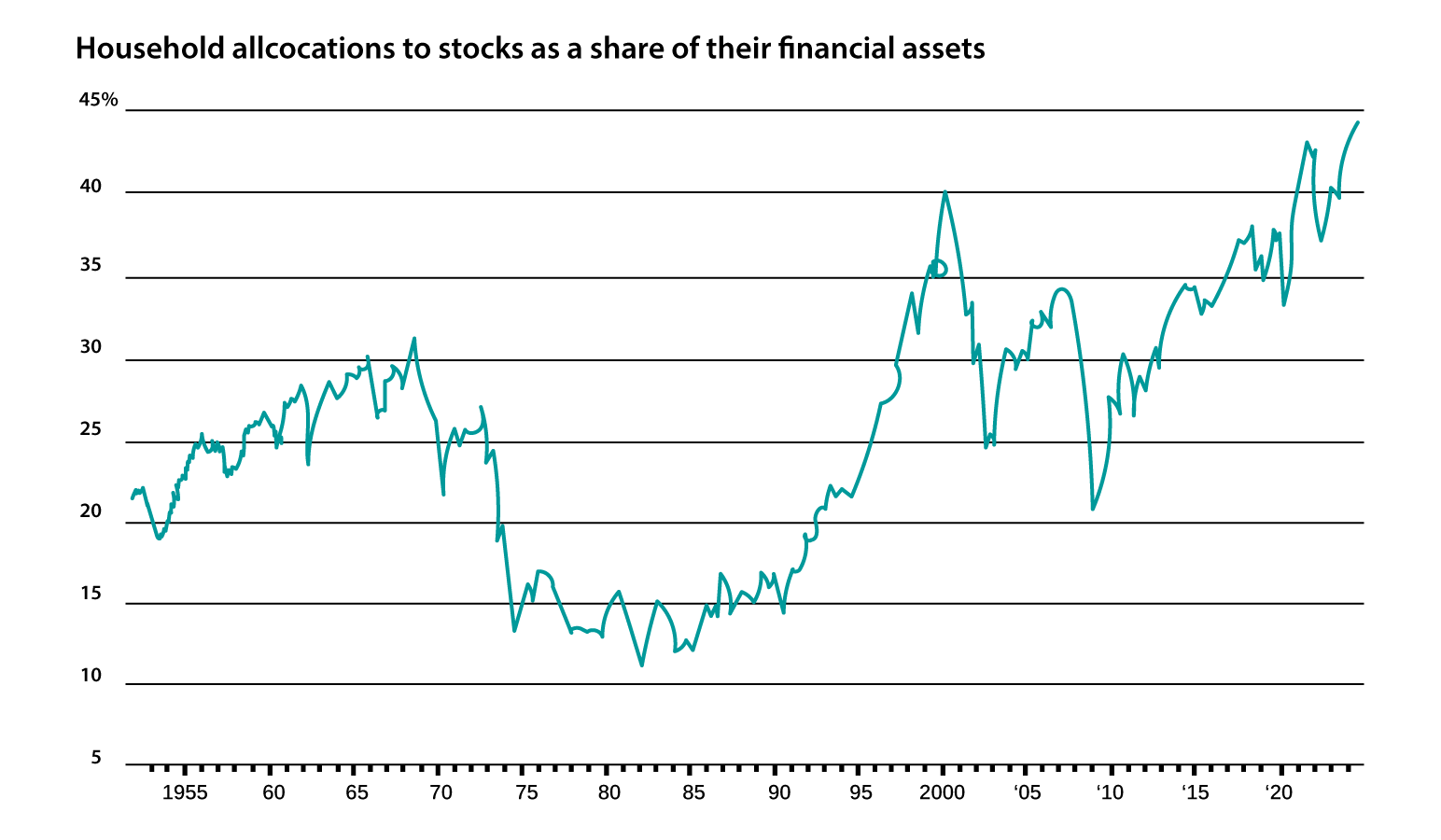 Household stock allocations have reached an all-time-a clear sign that the bull market, ongoing sine 2009, may be in its absolute late stage.