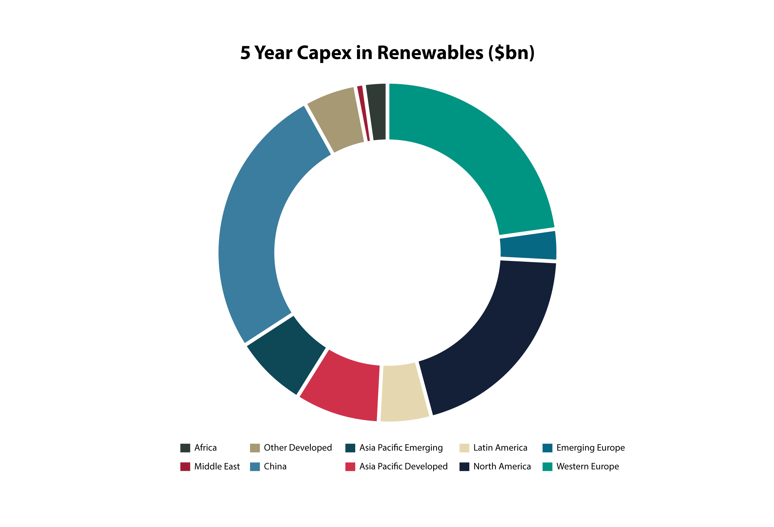Whilst sub-Saharan Africa continues to struggle with massive energy deficits, it only accounts for approximately 2% of new renewables energy spend. A continent blessed with solar irradiation resources is particularly well positioned, and in need of, realising the transition as soon as it pragmatically can.
