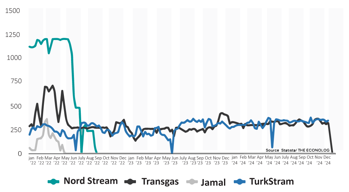to central Europe, delivering about 320 million cubic meters per week to Slovakia, Hungary, and Austria. When the contract expired on January 1, 2025,