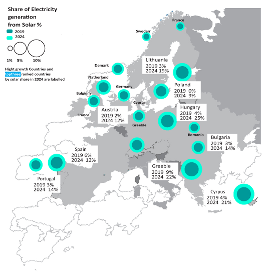 In fact, 2024 marked a record annual increase in solar generation, up 54 TWh (+22%) compared to 2023, when solar