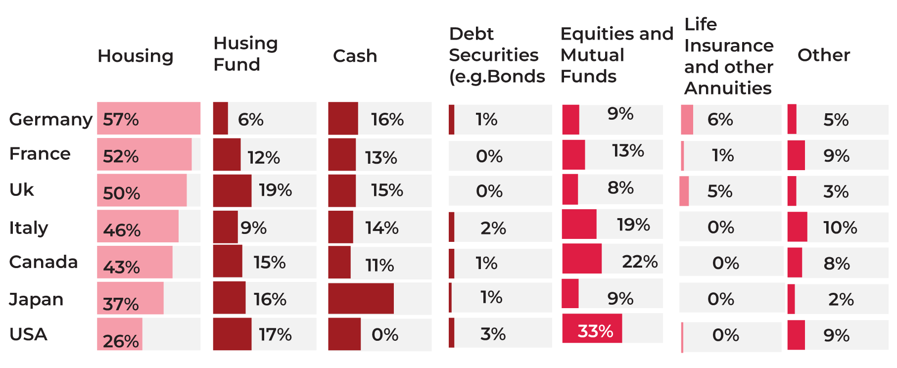 How people’s personal wealth is split across assert classes