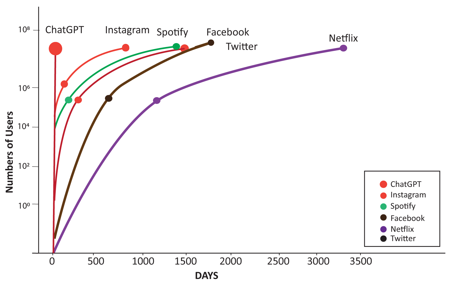# of days to 1M and users by technology