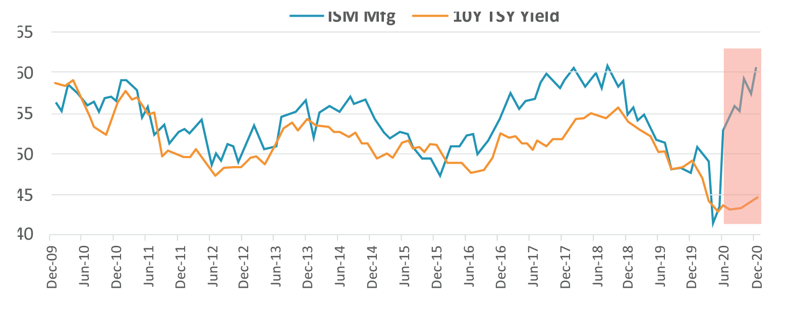 CHART 1: US MANUFACTURING NUMBERS SUGGESTING HIGHER INTEREST YIELDS TO FOLLOW.