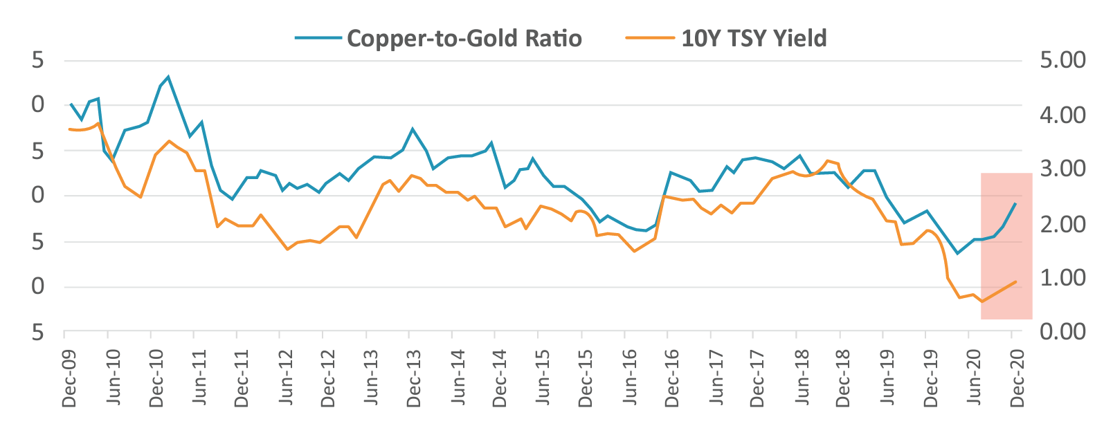 • Yield Curve Control: Major central banks have made it clear that they will wait until after inflation rises before raising rates. We think a slow-acting Fed should limit the rise in the 10-year U.S. Treasury yield to between 1.1% to 1.4%-compared to its current level of 0.85% in early December.