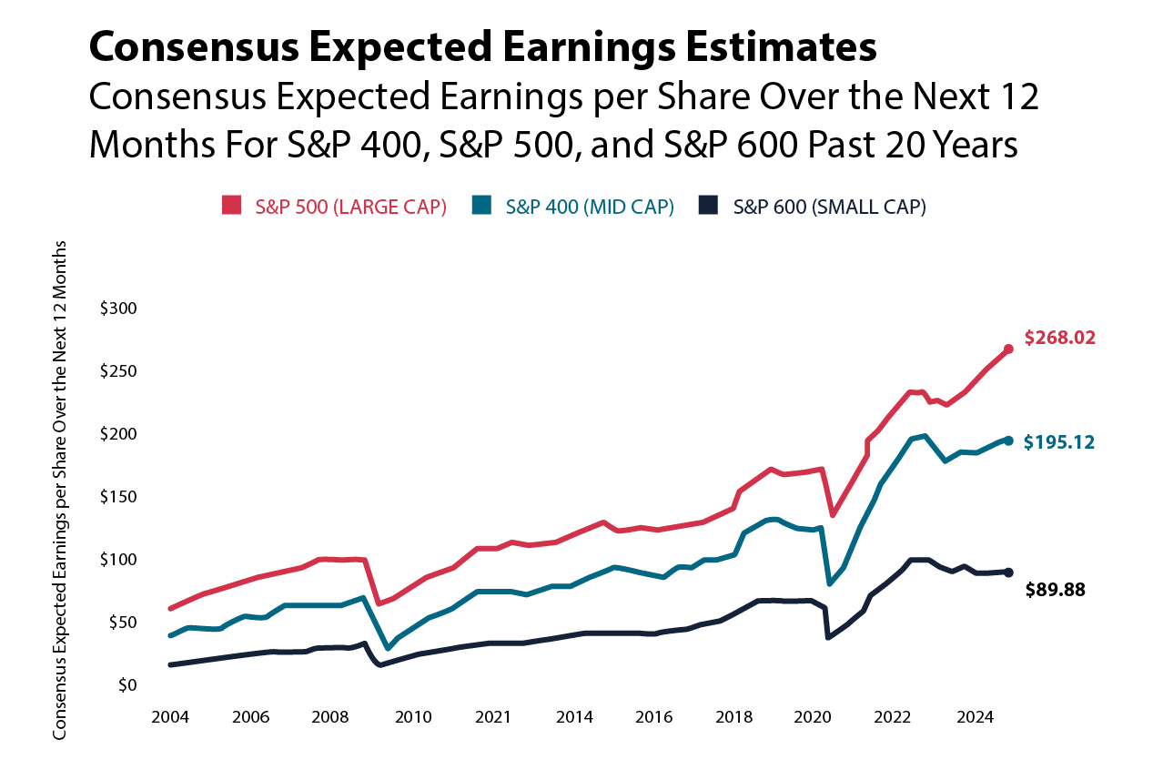 Figure 7: Forwards Looking Earnings Expectations for small, mid and large cap companies