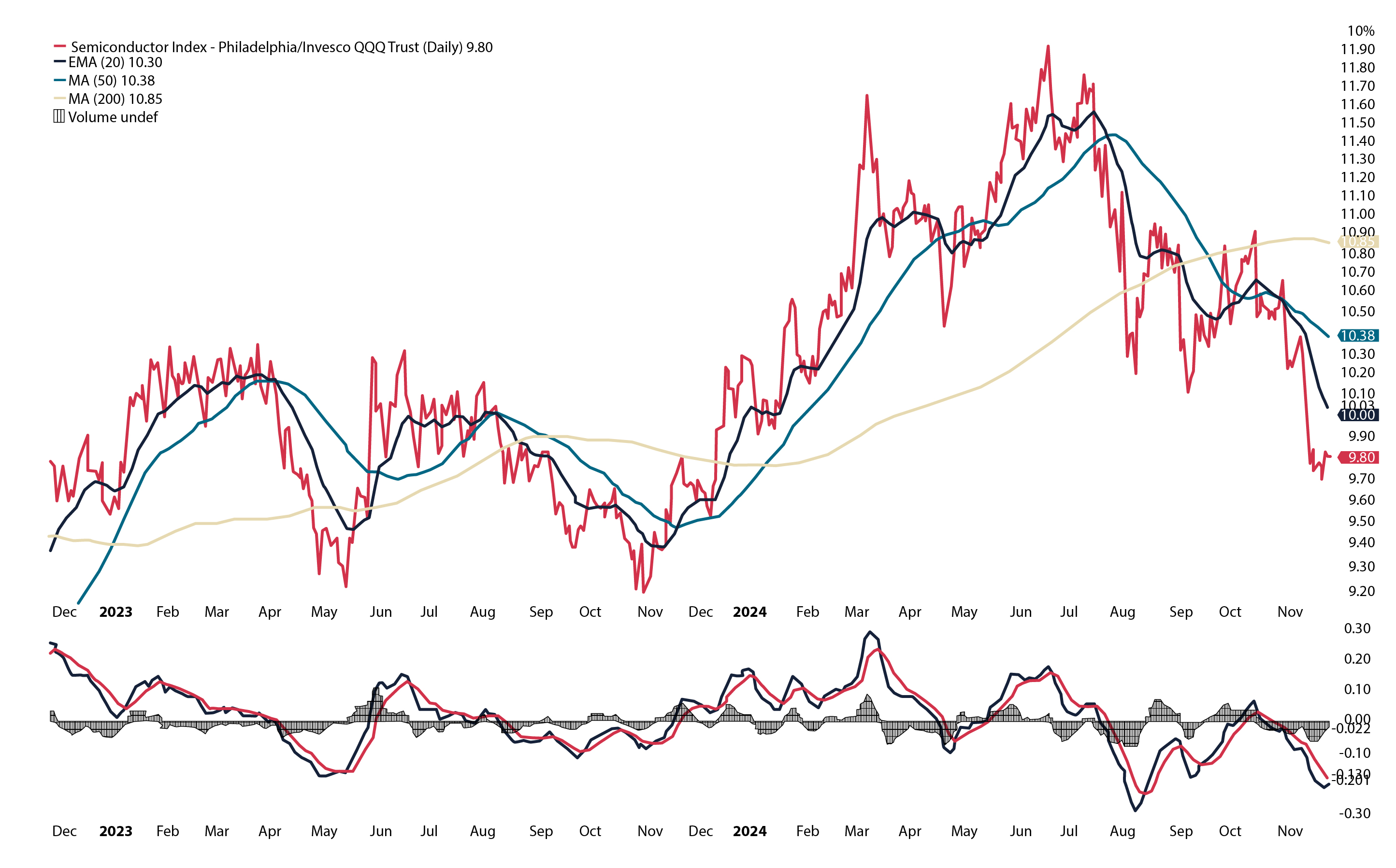 Figure 3: Semi-Detached – semi conductor stocks have fallen behind in recent times